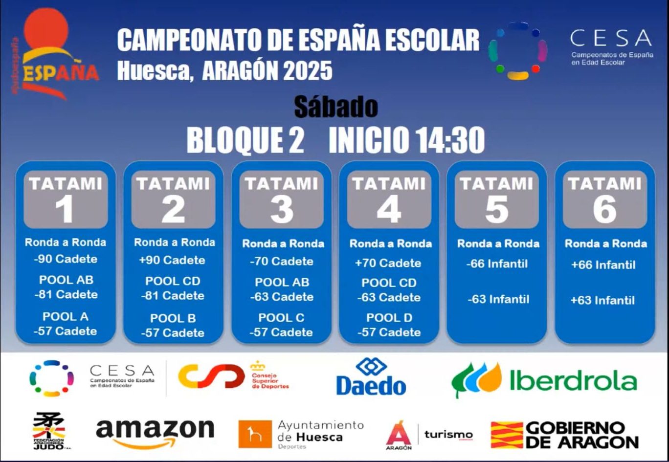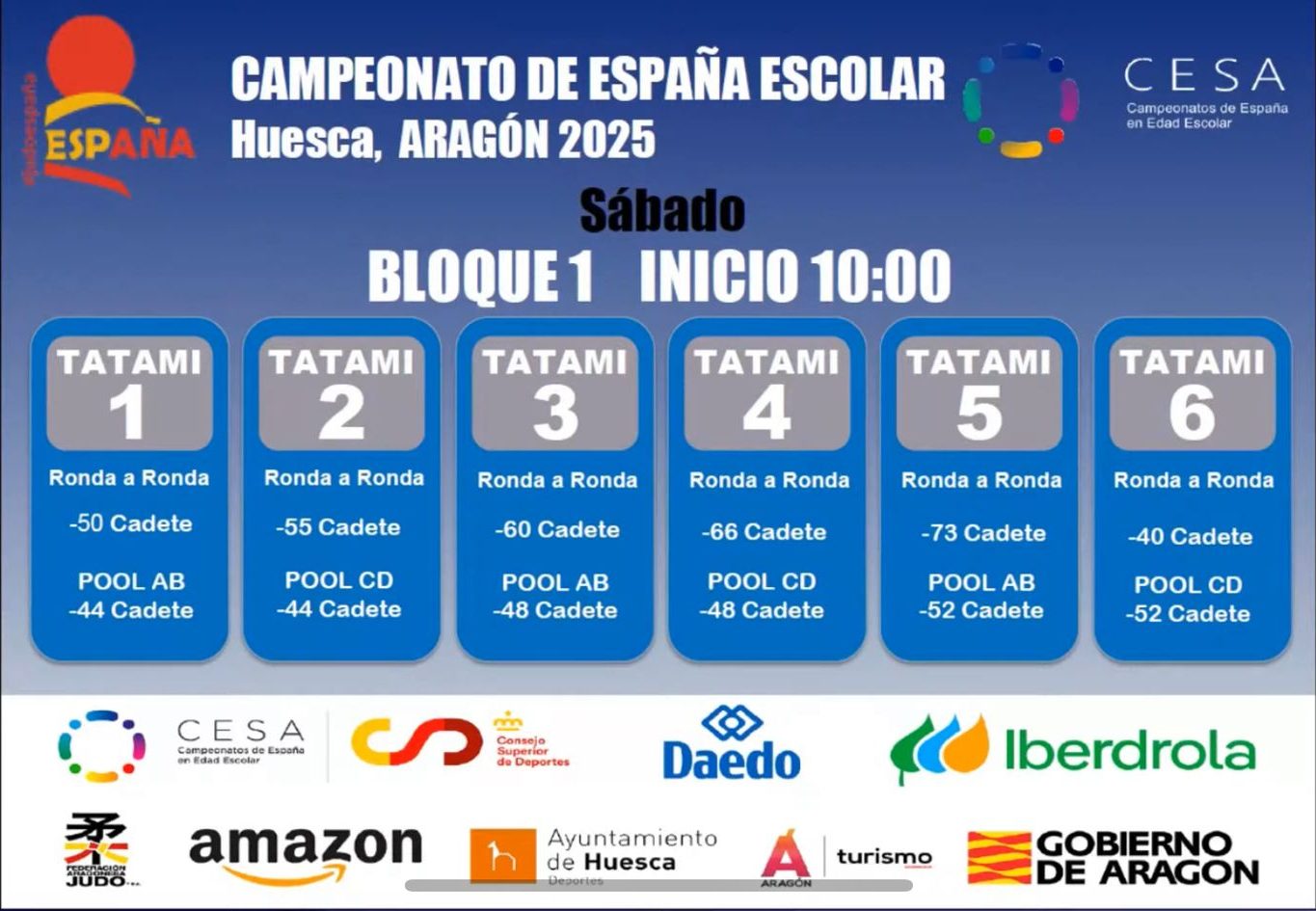 Ya disponibles la planificacion de tatamis de sábado, tanto del bloque 1 y como del bloque 2
