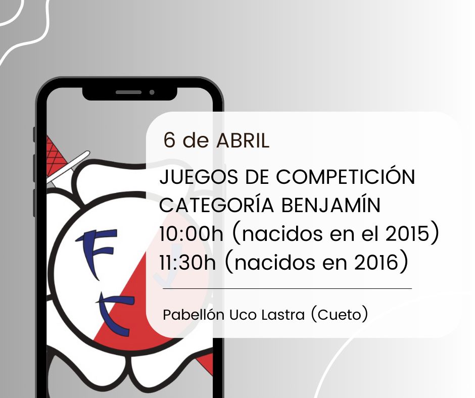 El próximo Domingo 6 de abril en el el Pabellón Uco Lastra-Cueto tendrán lugar unos juegos de competición benjamín.